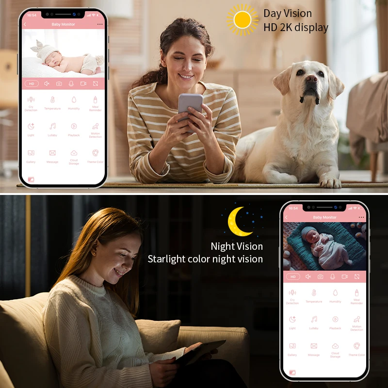 Pianto e rilevamento della temperatura 4Mp 2K Wireless Audio a due vie Tuya Wifi Smart Video Baby Sleep Monitor telecamera con Tuya App