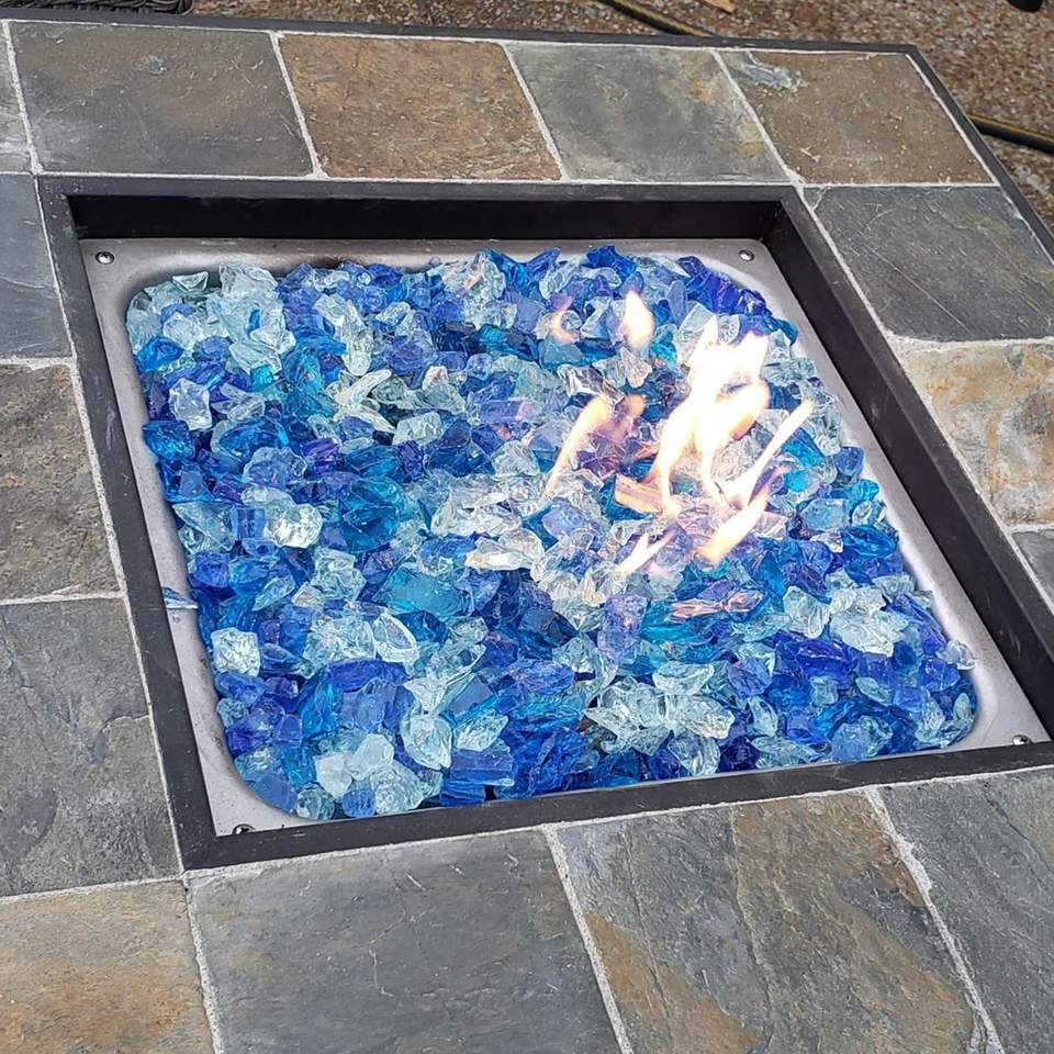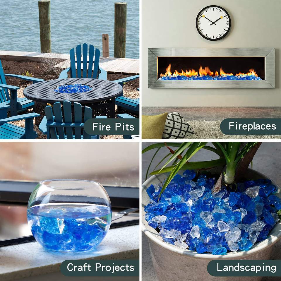 Pietre di Vetro Blu Cristallino Frantumato per Giardino, Paesaggistica, Camera da Letto, Sala da Pranzo, Terrazzo, Braciere a Gas Propano, Vetro per Focolare