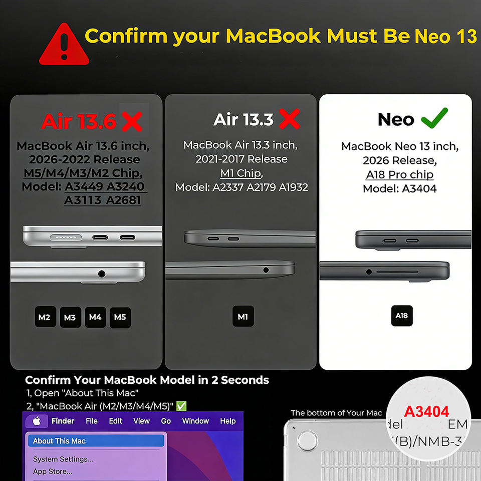 Numero modello:Custodia MacBook Neo 13 pollici 2026 A3404