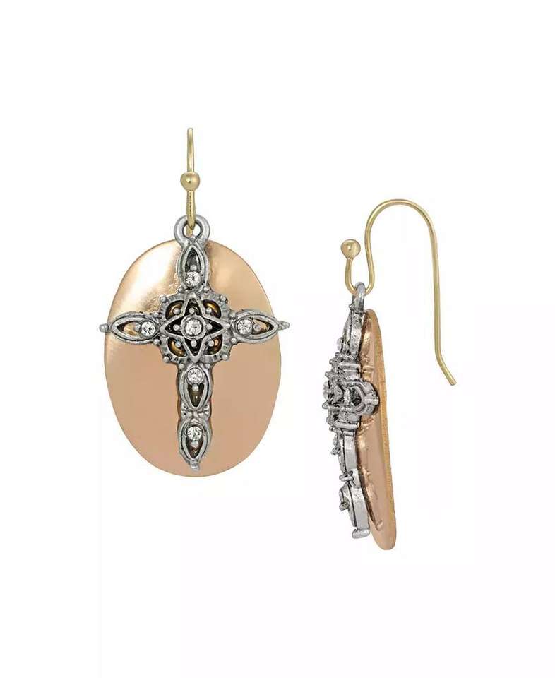 Orecchini Pendenti Ovali con Croce di Cristallo | 2028