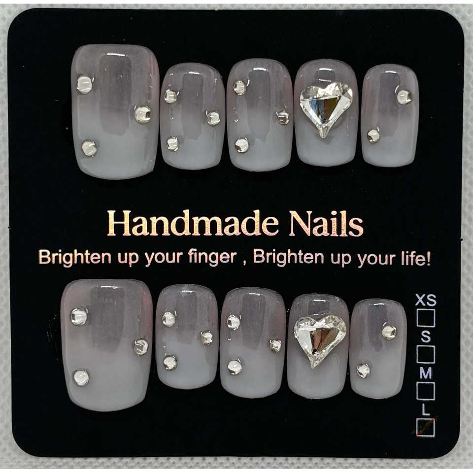 Set di Unghie Finte in Cristallo Stile Francese - Misura Grande