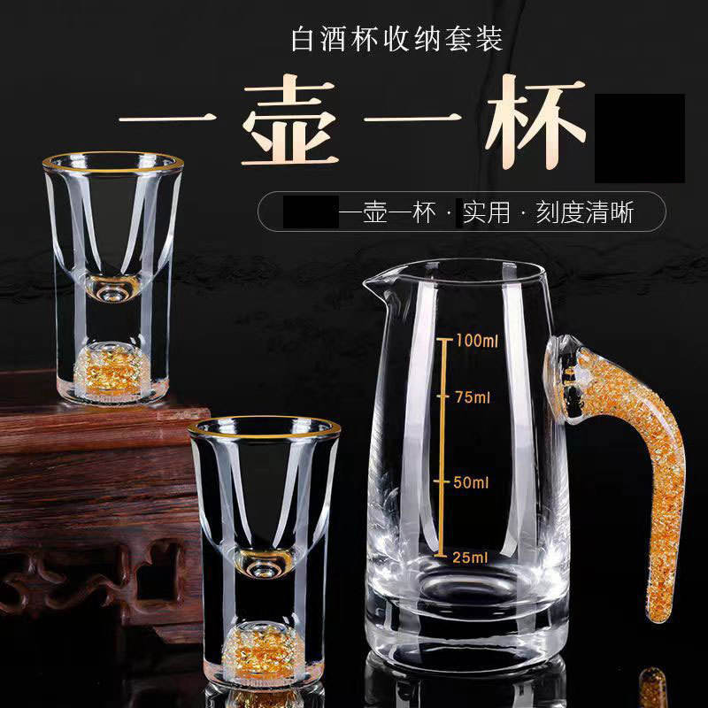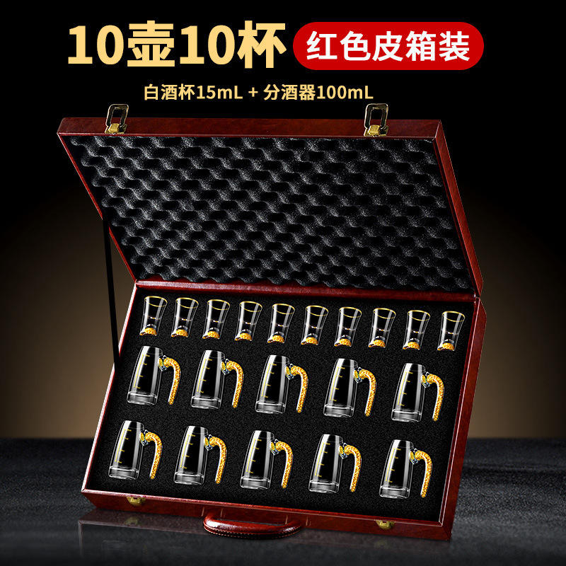 Crystal Glass Liquor Glass Dispenser Leather Box Light Luxury Household Ten Jugs and Ten Cups Gold Leaf White Wine Set