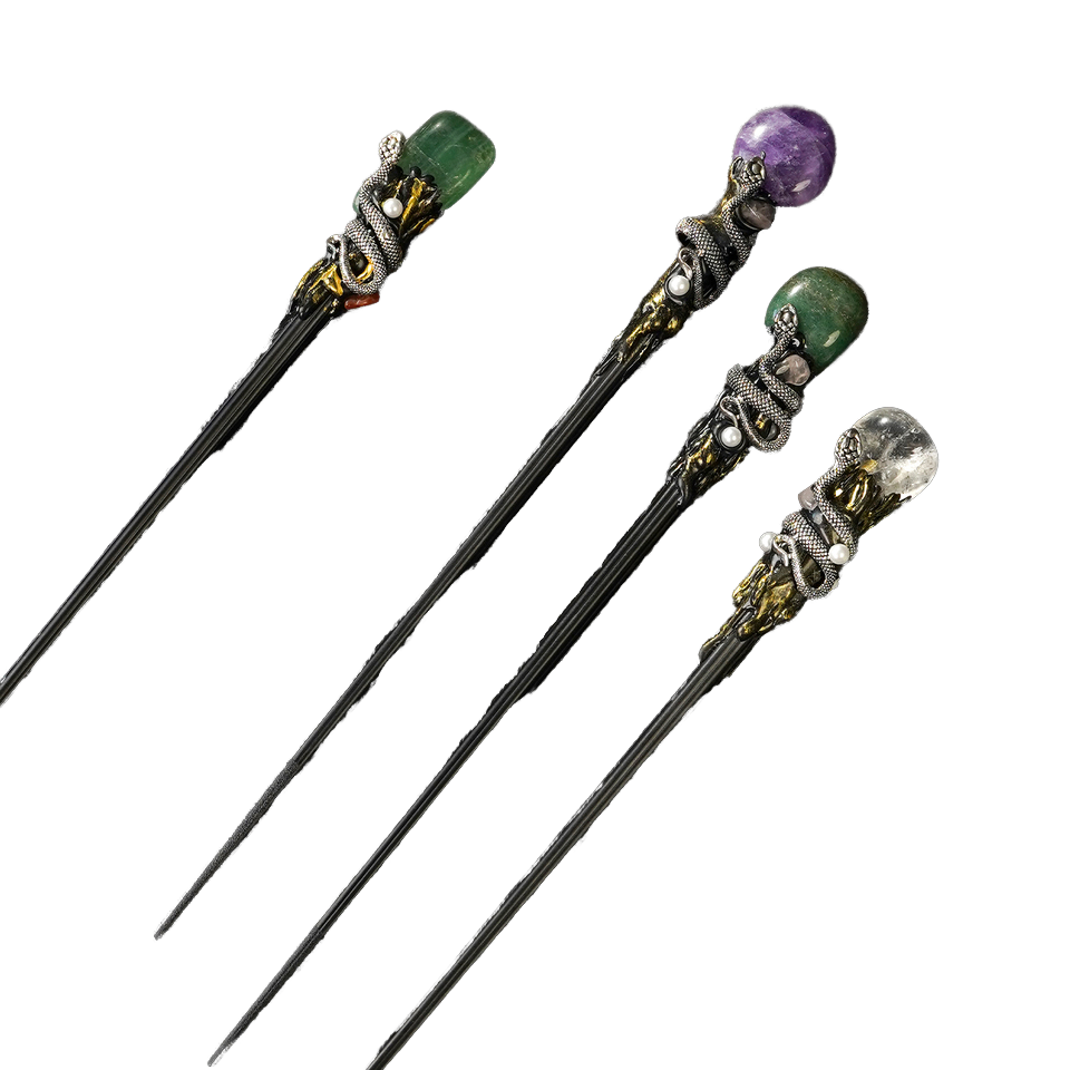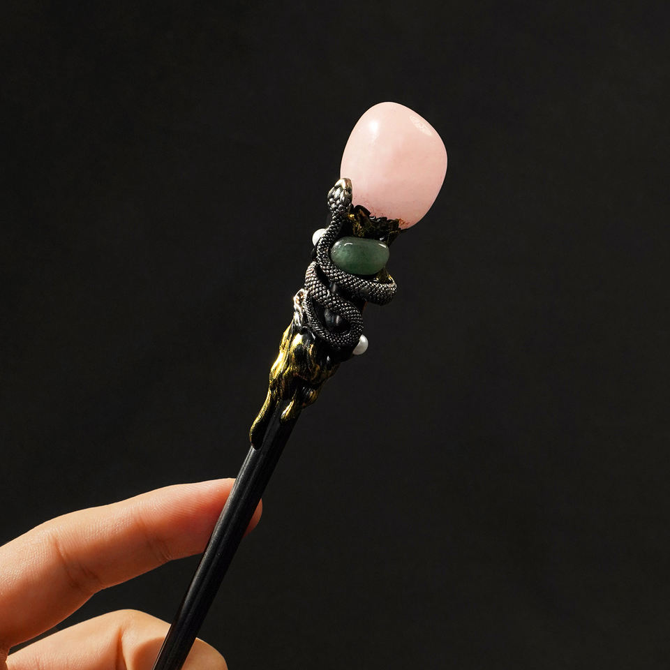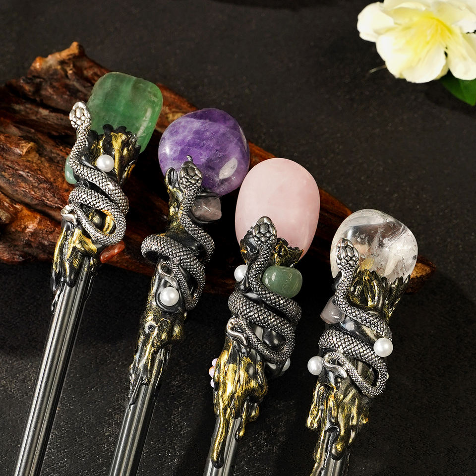 Xi'an Tianyu Bacchetta di cristallo con serpente per cristalloterapia – ametista, quarzo rosa, fluorite verde, avventurina