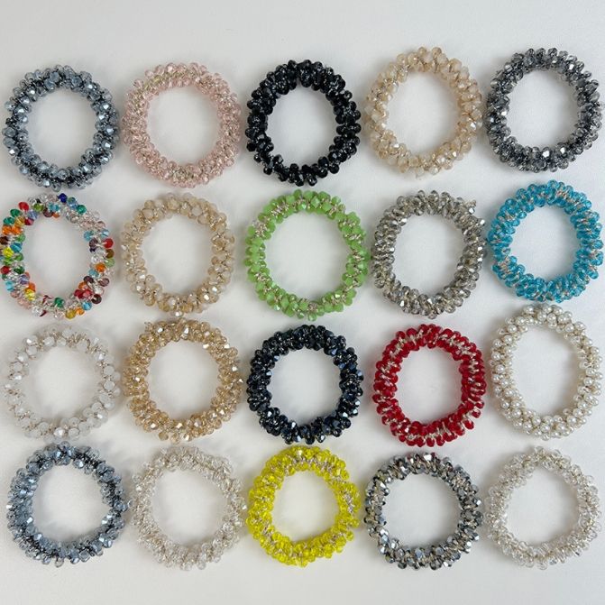 Crystal Pearl Beads Bracelet Ponytail Holder Elastic Scrunchies Hair Accessories for Women Girls