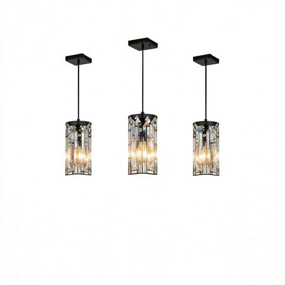 Lampadario a Sospensione in Cristallo 4 Pollici Finitura Nera Lampada da Soffitto Regolabile Design a Prisma Cilindrico per Sala da Pranzo Soggiorno