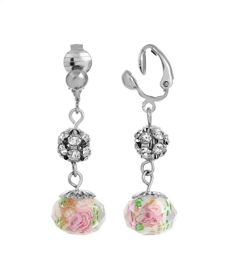 Crystal Pink Flower Beaded Clip Earrings | 2028