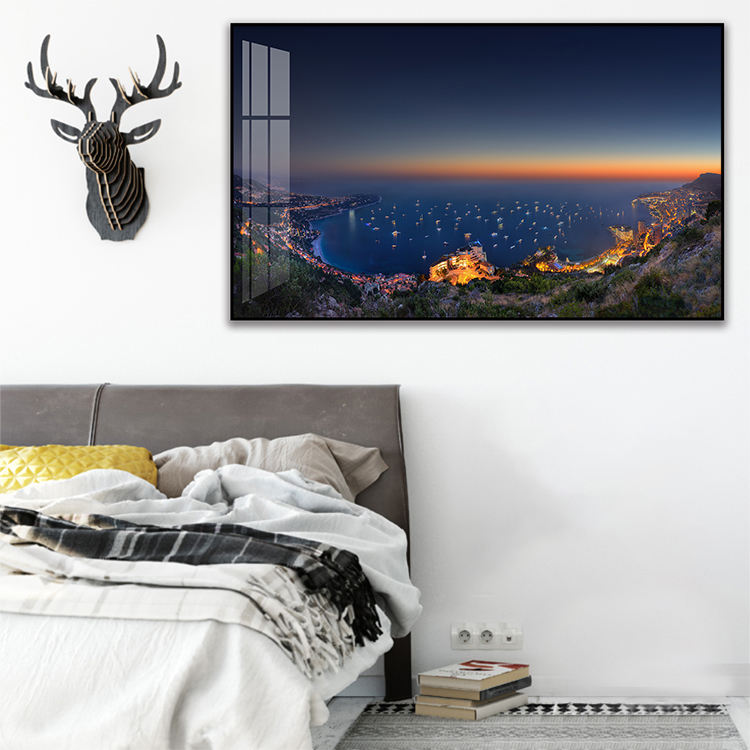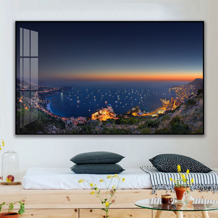 Crystal Porcelain Painting Landscape a Night View of Monaco Wall Art Frame for Bedroom Decoration Print Poster Home