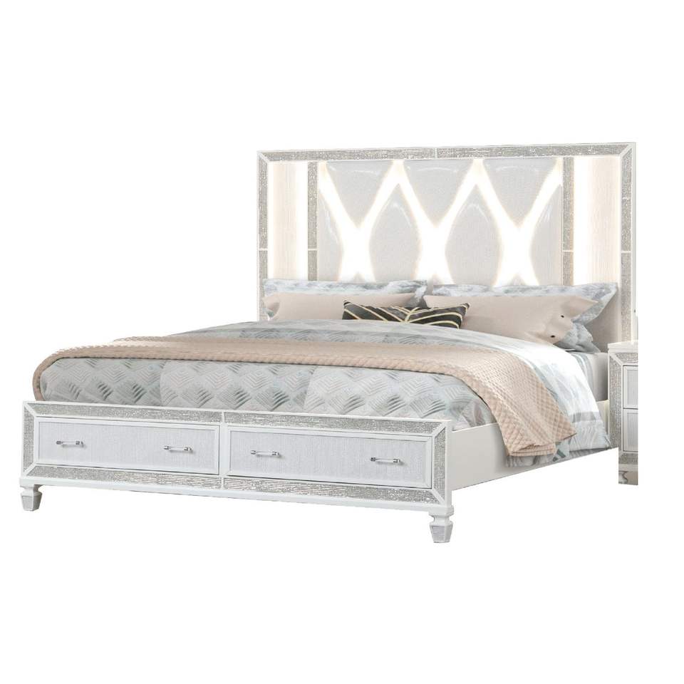 Letto di cristallo matrimoniale bianco rifinito legno elegante con fondine