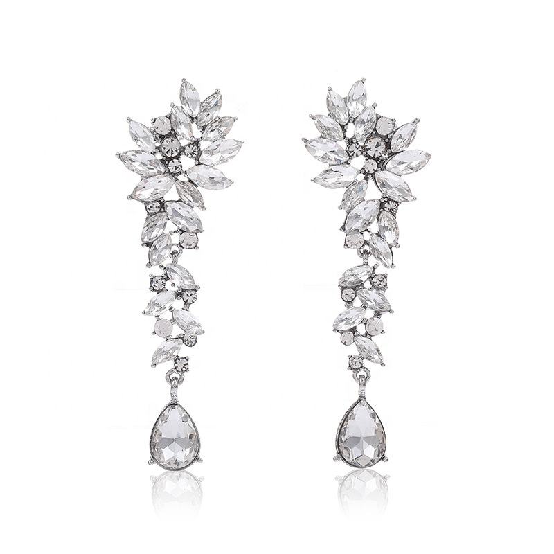 Orecchini pendenti con strass di cristallo orecchini pendenti con goccia d'acqua con diamanti pieni gioielli da donna per banchetti di nozze da sposa