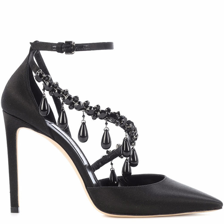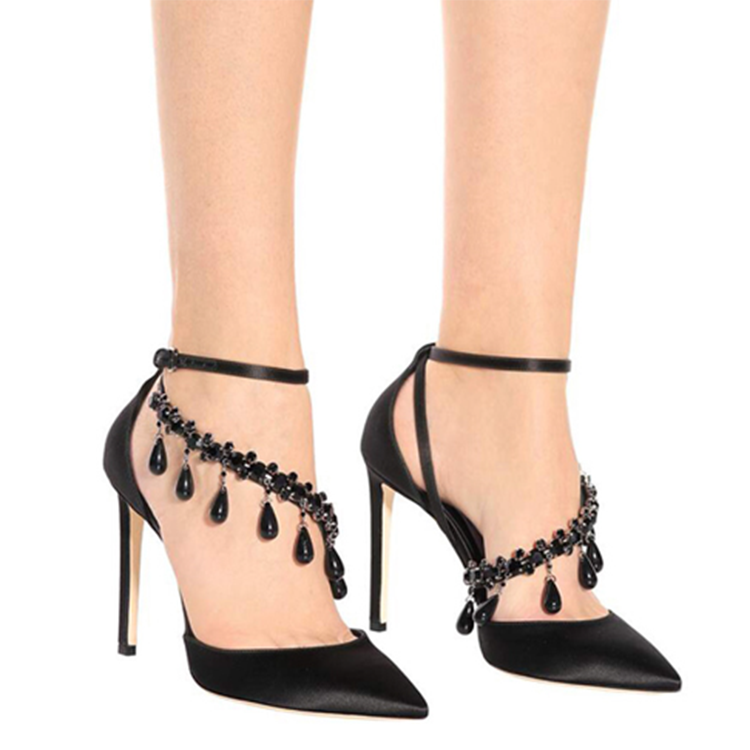 Nome del prodotto::Scarpe da sposa con strass di cristallo costose con punta aperta in argento tacchi alti