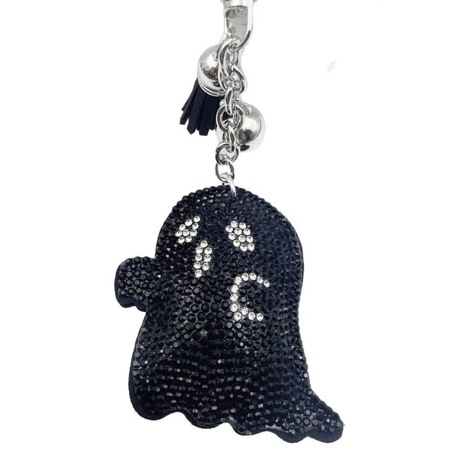 Portachiavi Fantasma con Strass di Cristallo, Regalo di Halloween, Ciondolo Scintillante per Borsa in Velluto con Nappa