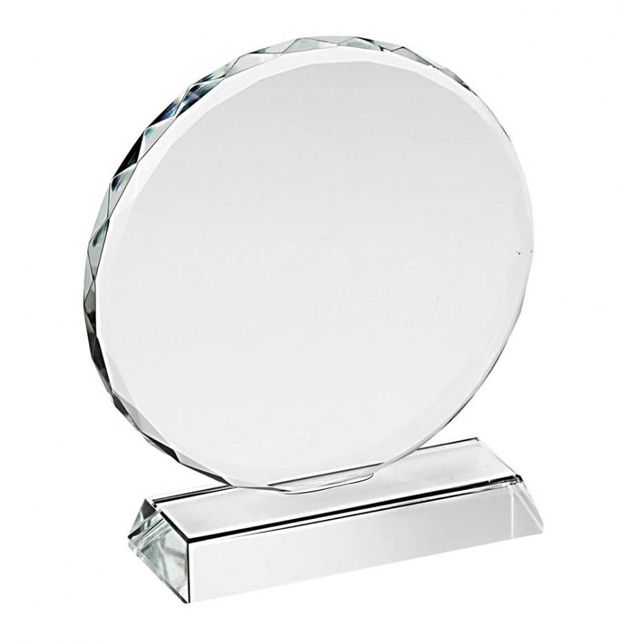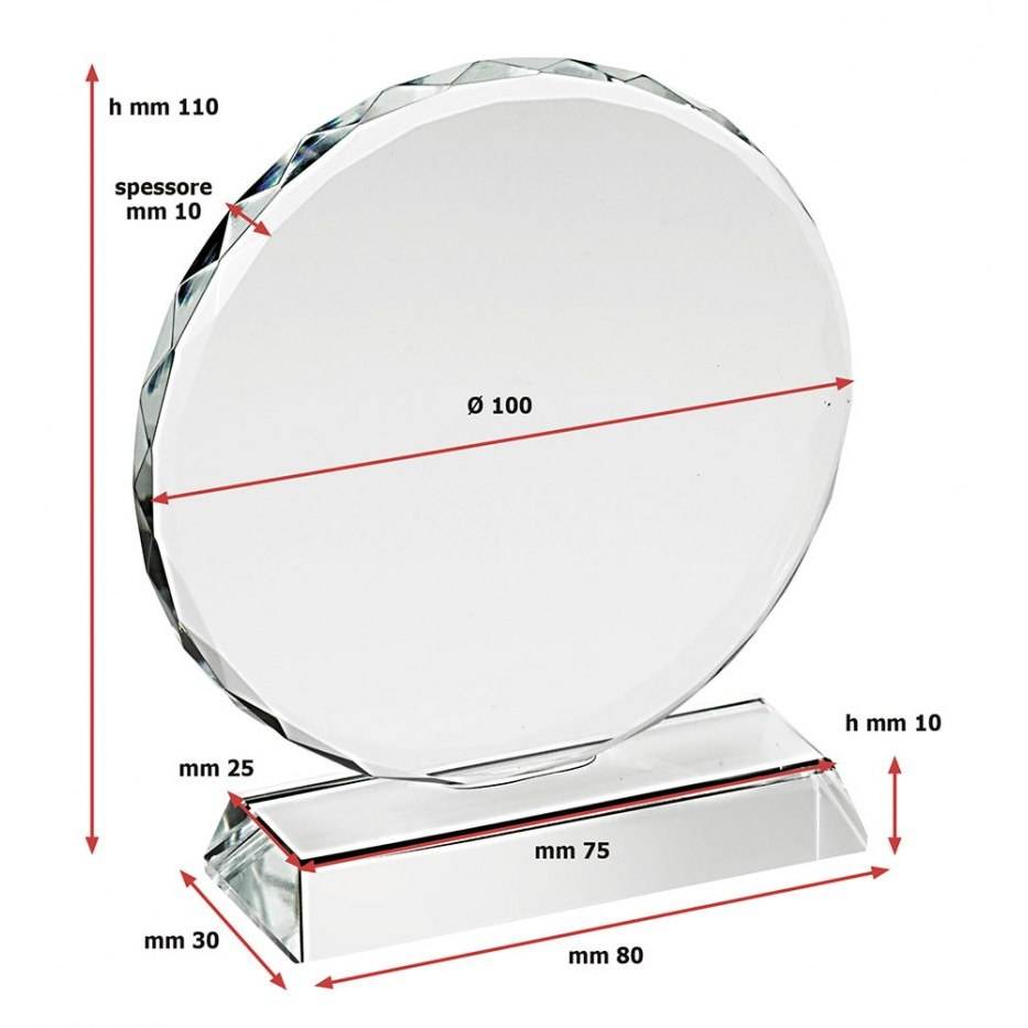 Trofeo Rotondo in Cristallo, Diametro 100mm, Bordo Sfaccettato, Targa Premio