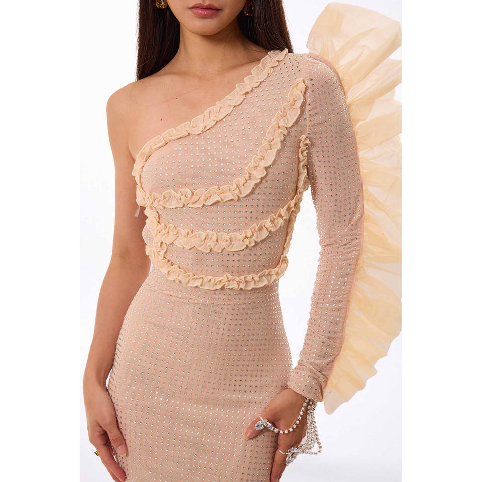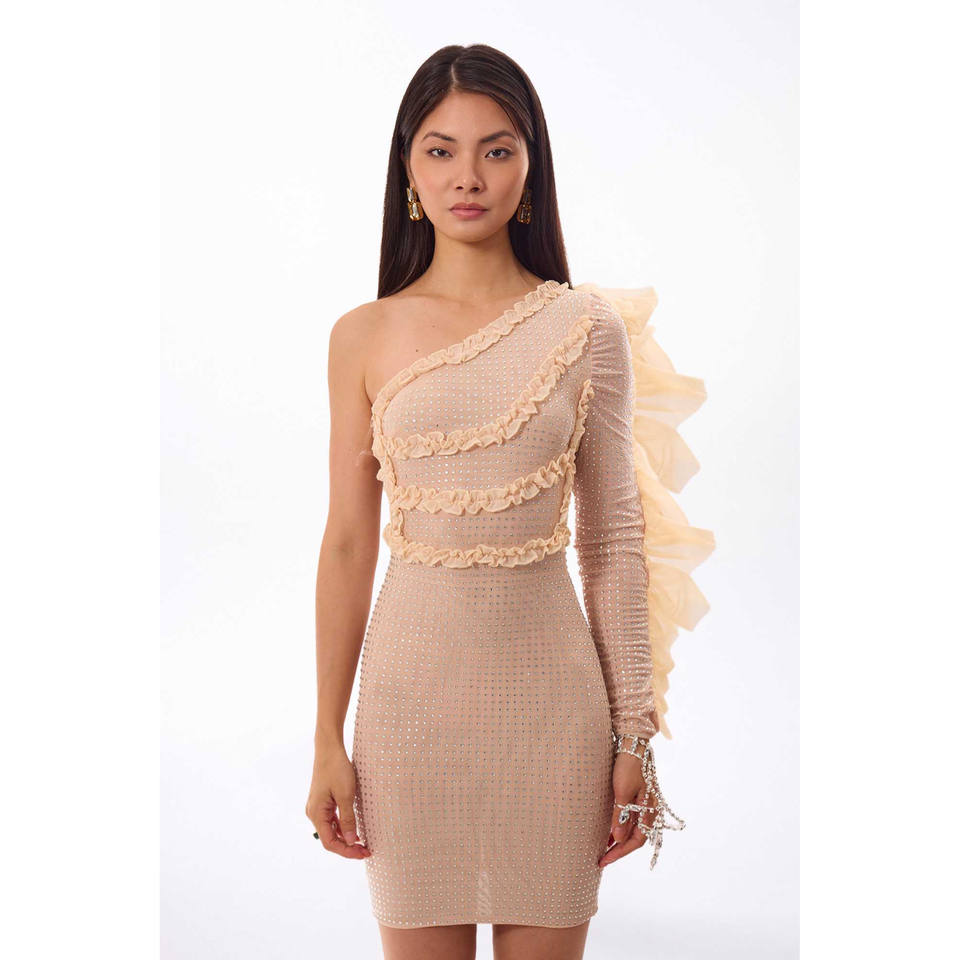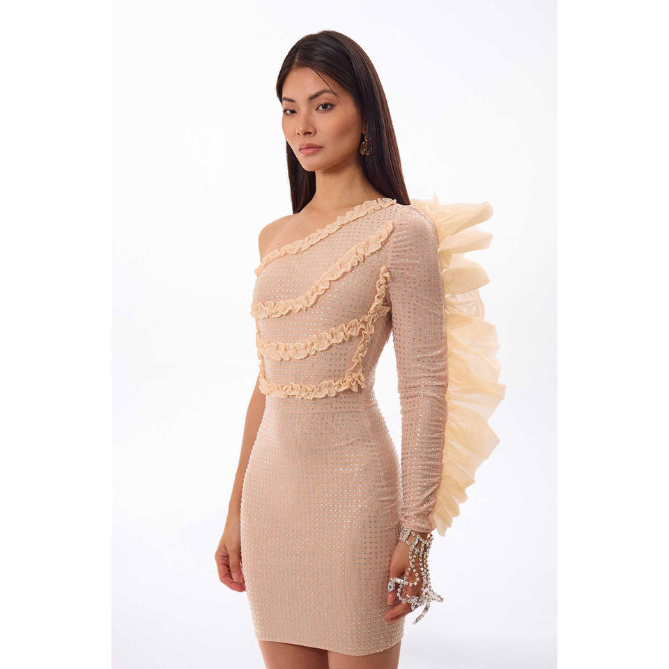 Mini Abito Monospalla con Volant in Cristallo