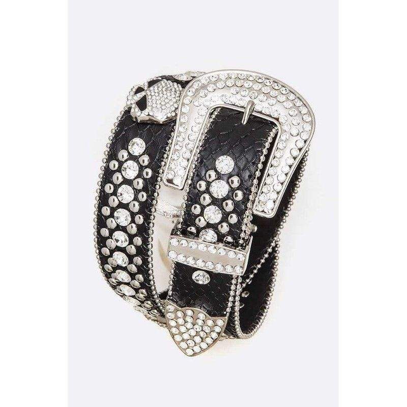 Cintura in Pelle PU con Teschio di Cristallo, Accessorio in Plastica Durevole ed Elegante
