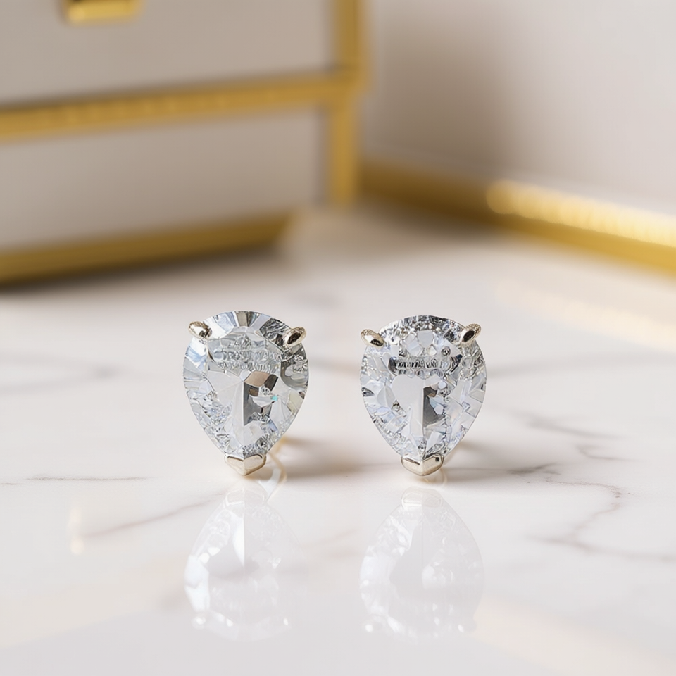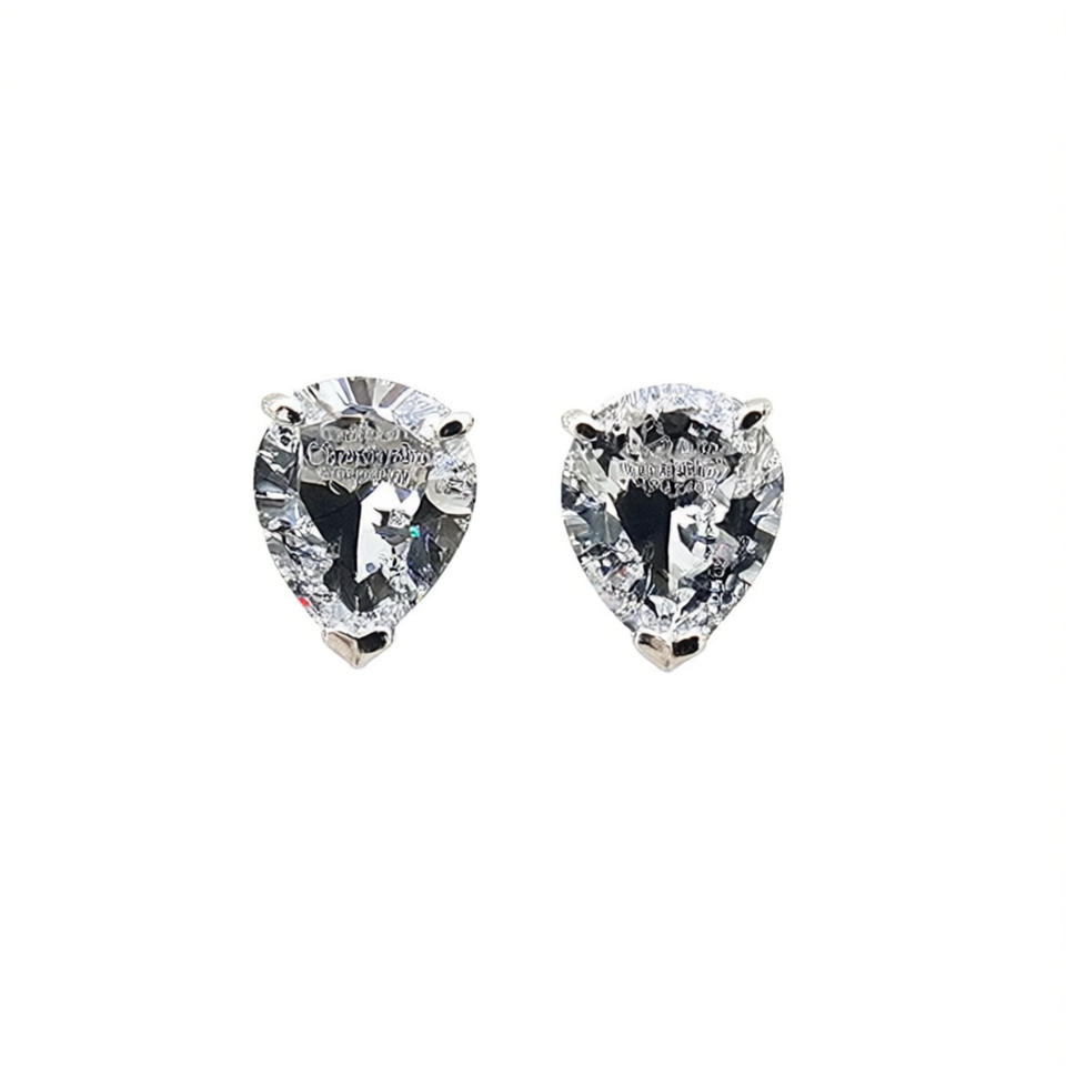 Crystal Stud Earrings White Gold Water Drop Shape Claw Setting Classic Women's Jewelry Rhinestone Earrings