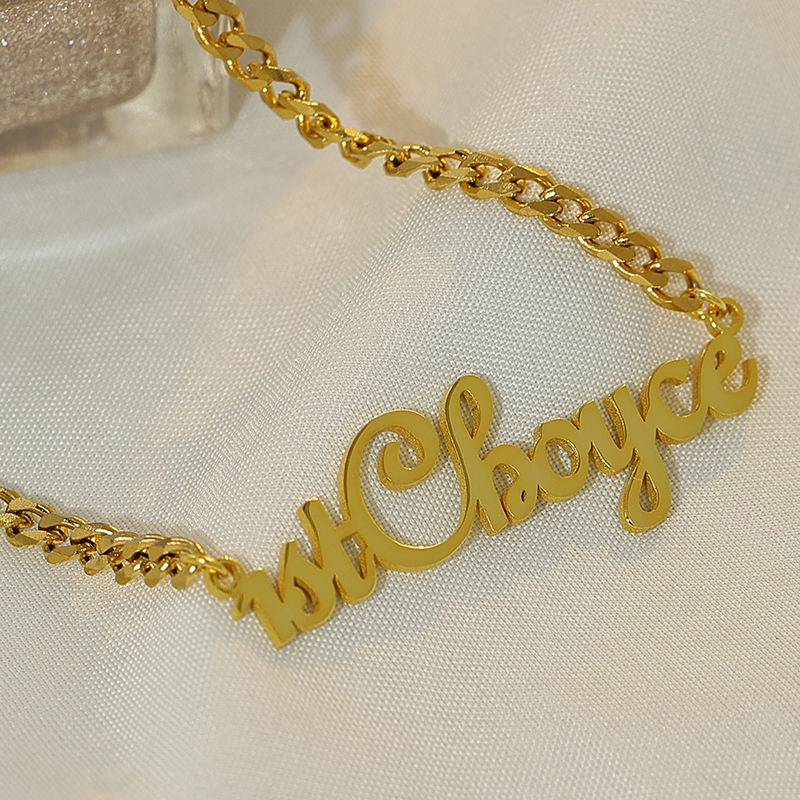 Catena a maglia cubana collana con nome personalizzato placcato in oro gioielli personalizzati in acciaio inossidabile collane con targhetta con lettera gotica