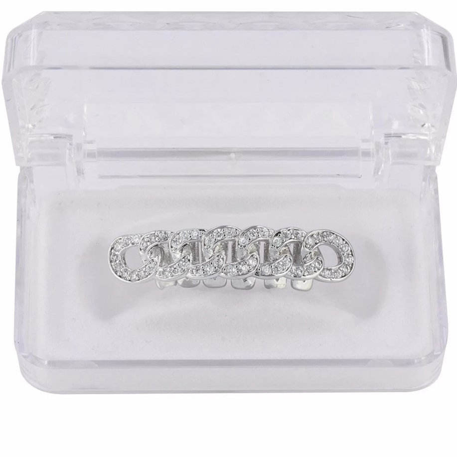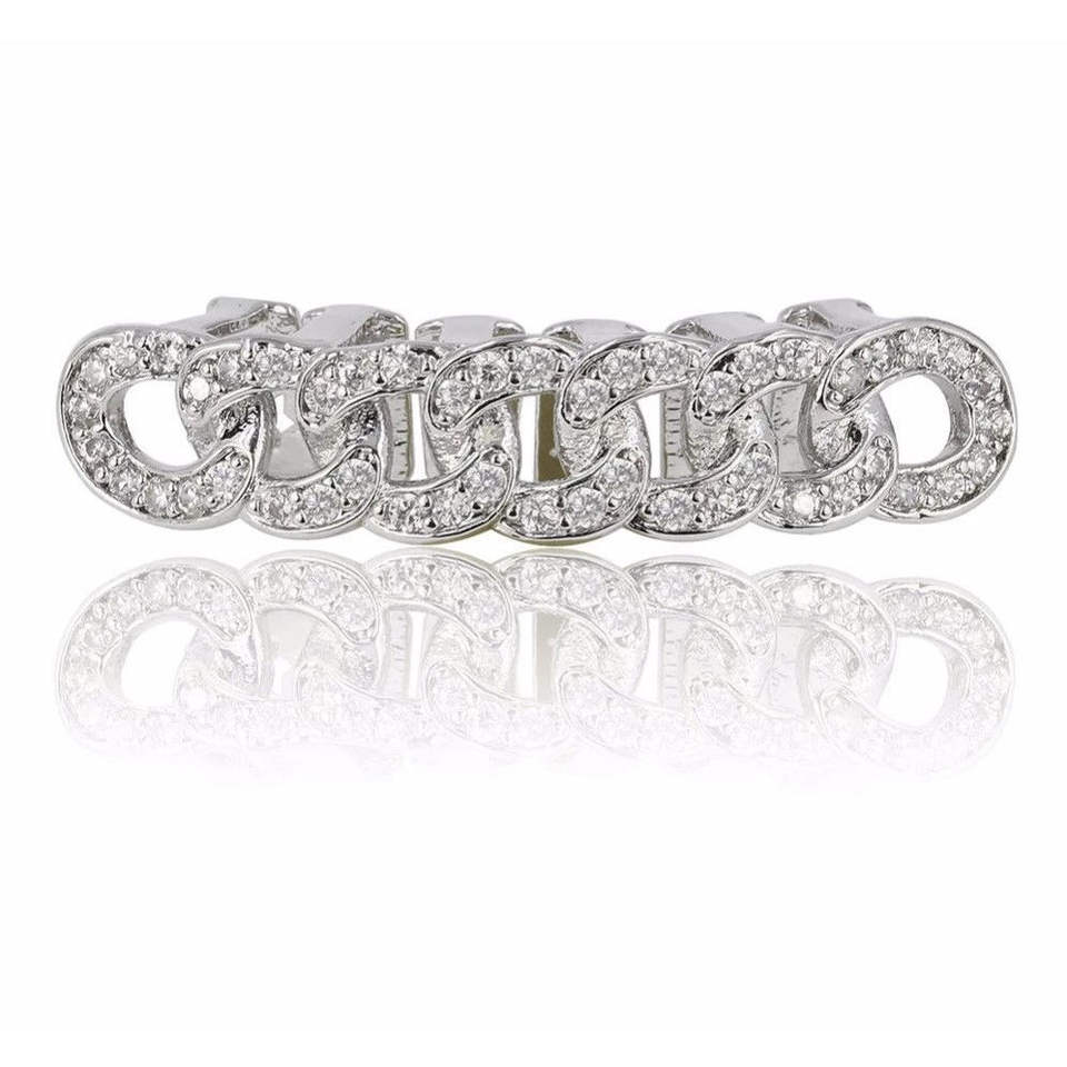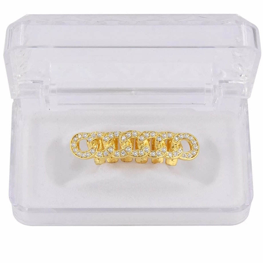 Grillz Cuban Link Placcati Oro 22k con Zirconia Cubica, Gioielli Unisex Stile Hip-Hop per Uso Quotidiano