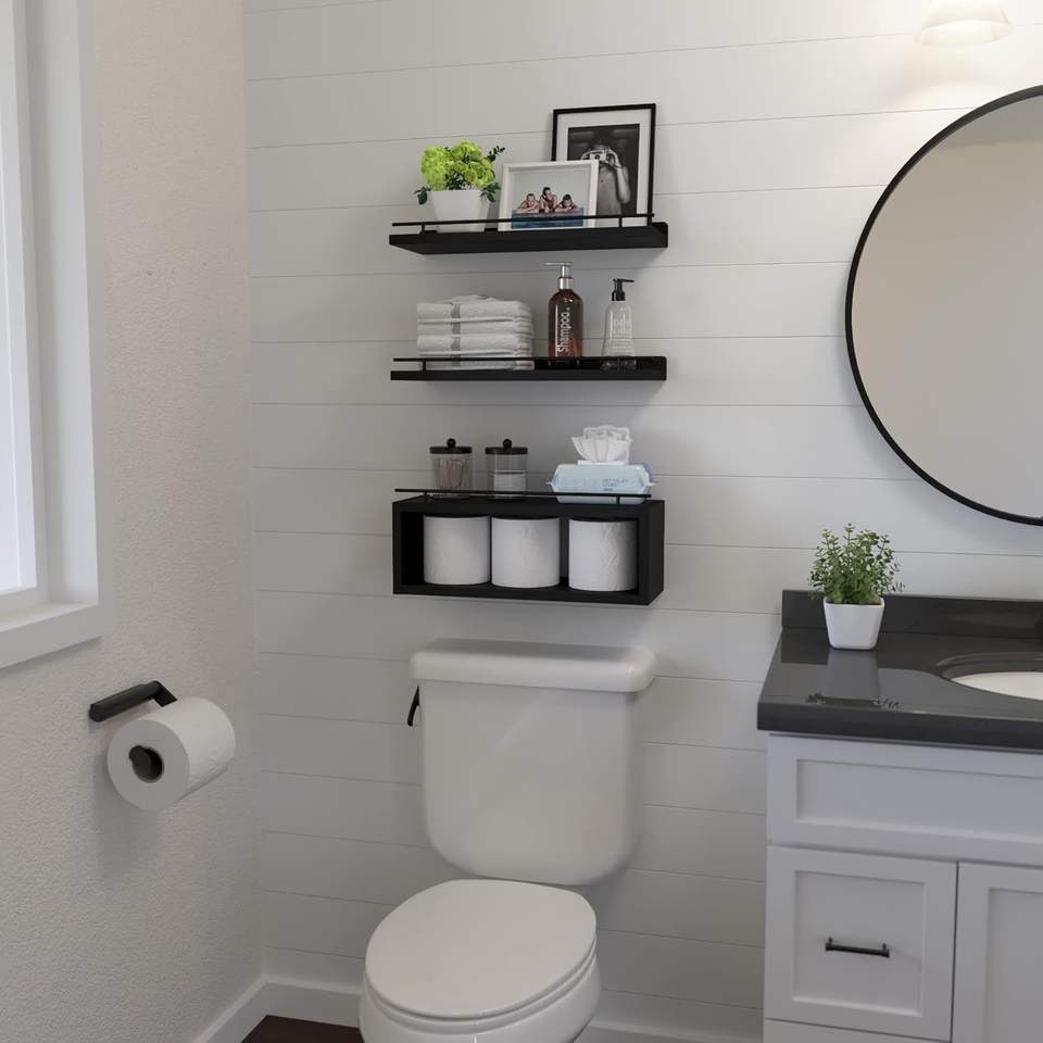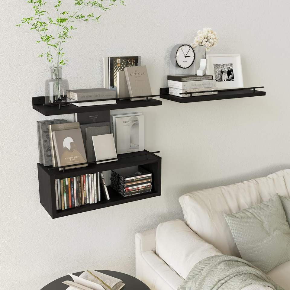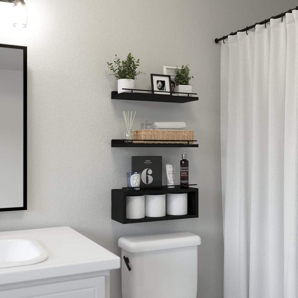 Cube Shelf Wall Floating Shelves Bathroom Shelves with Metal Rail for Wall Storage