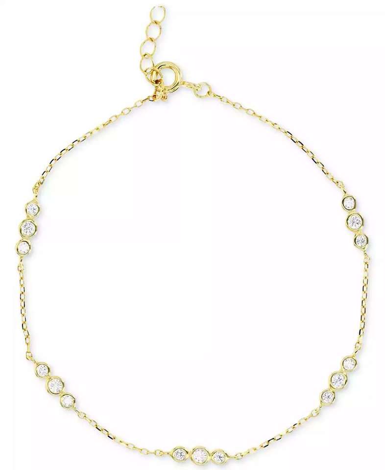 Cubic Zirconia Bezel Trios Chain Link Bracelet in 14k Gold-Plated Sterling Silver | Macy's