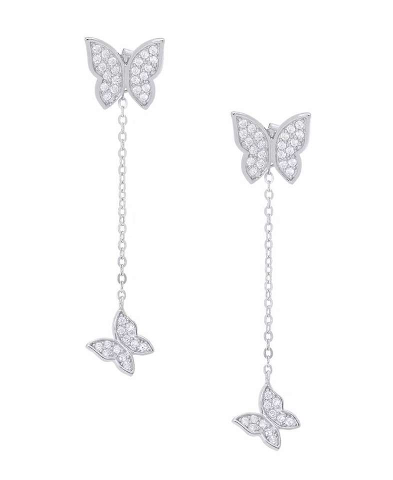 Orecchini a catena farfalla zirconi cubici in piatto d'argento | Macacy's