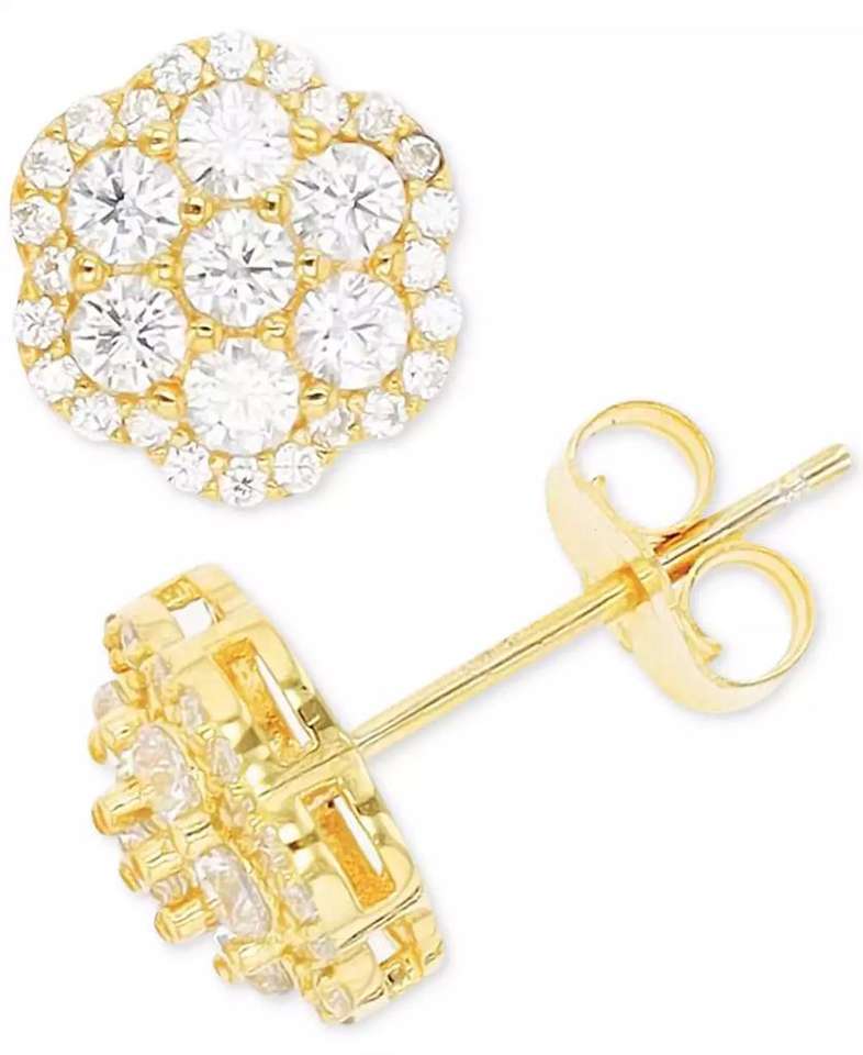 Cubic Zirconia Cluster Stud Earrings in 14k Gold-Plated Sterling Silver | Macy's