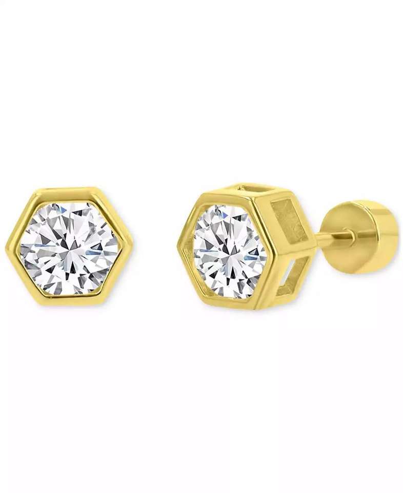 Orecchini esagonali con zirconi cubici (1-1/4 ct. T. w.) in argento Sterling placcato oro 14k | Macacy's