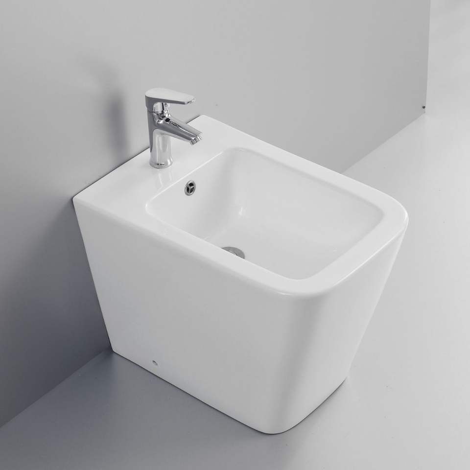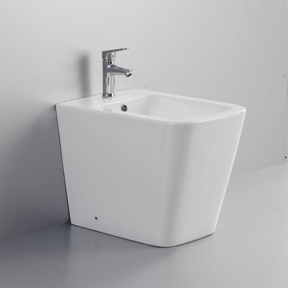 Modello Cubik Bidet in ceramica da pavimento bianco lucido Design Back-to-Wall Pack da 1