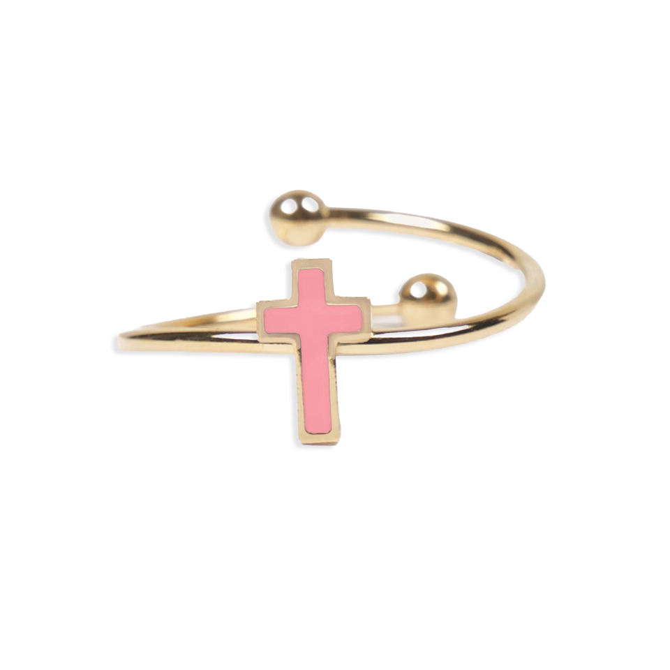 Anello Cucocuca YFB R294 in Acciaio Inossidabile Smaltato Placcato Oro con Croce Multicolore, Misura Regolabile, Stile Classico, Uso Quotidiano, Cristiano, EU 48h