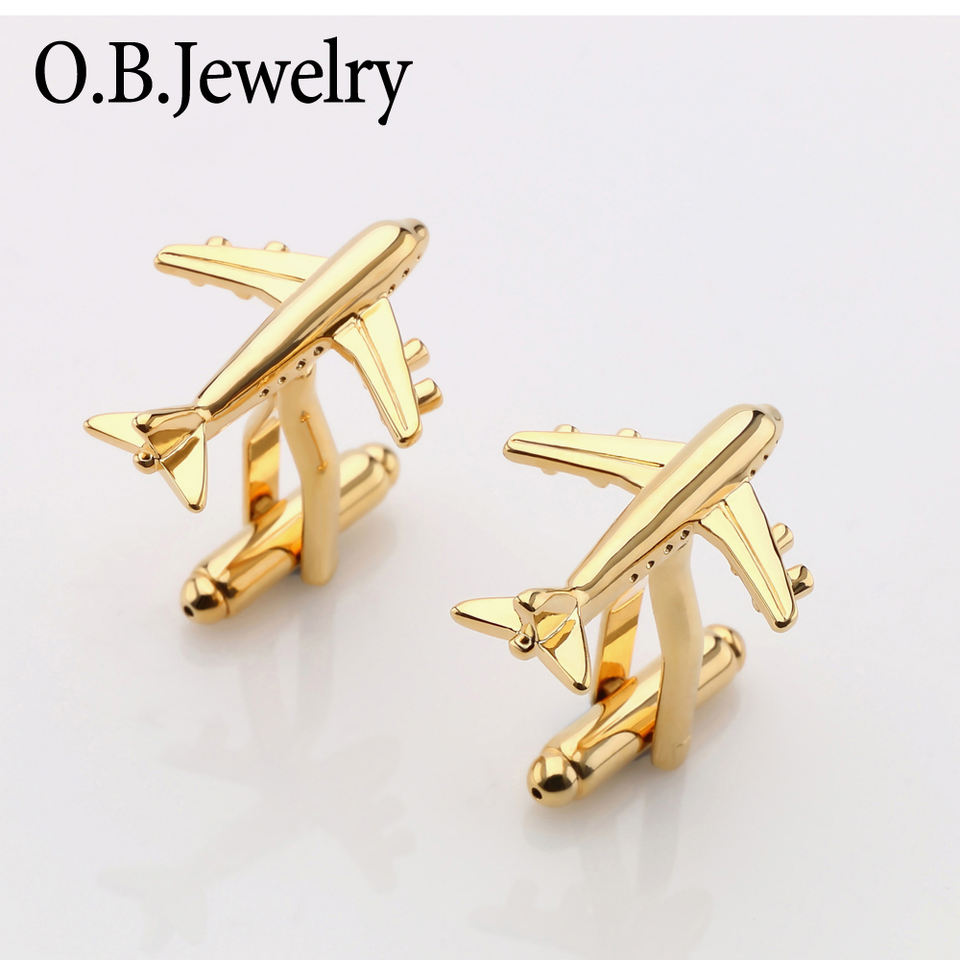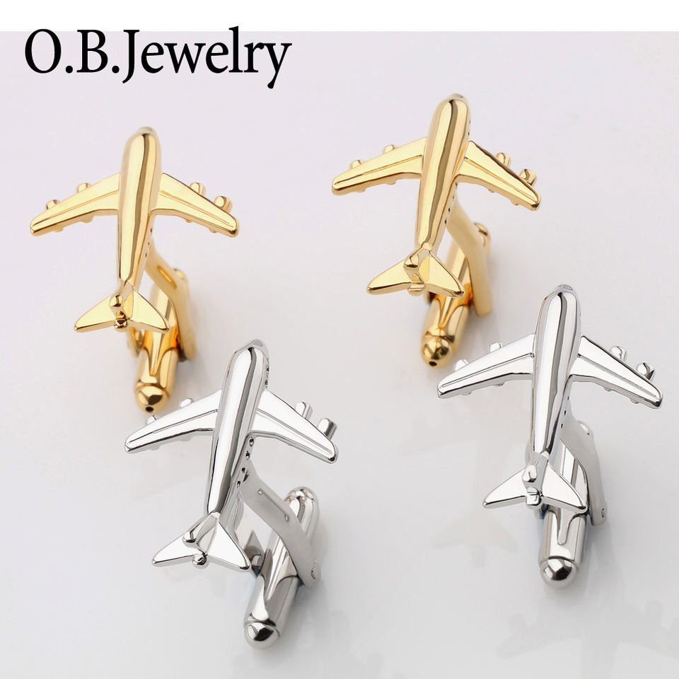 Gemelli Fabbrica Della Porcellana Commercio All'ingrosso Aereo gemelli In Oro e Argento di Colore del Metallo A Buon Mercato Aereo Gemelli Della Camicia Degli Uomini Polsini Gemello