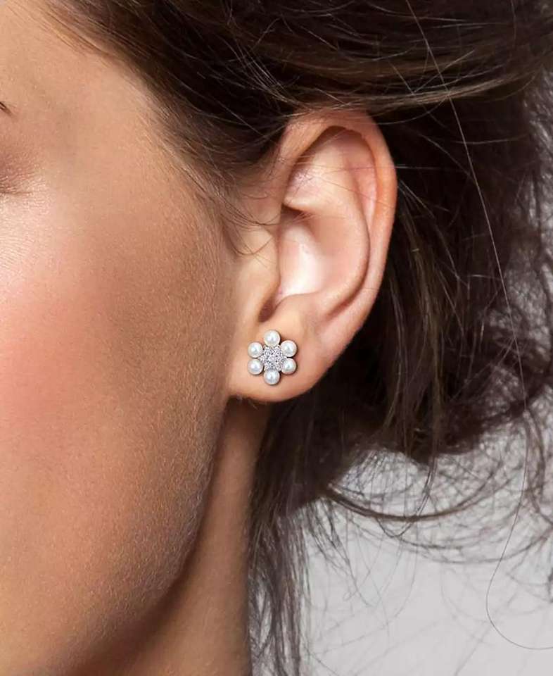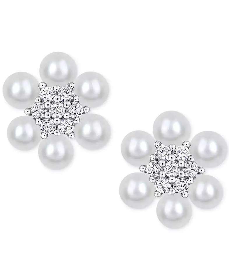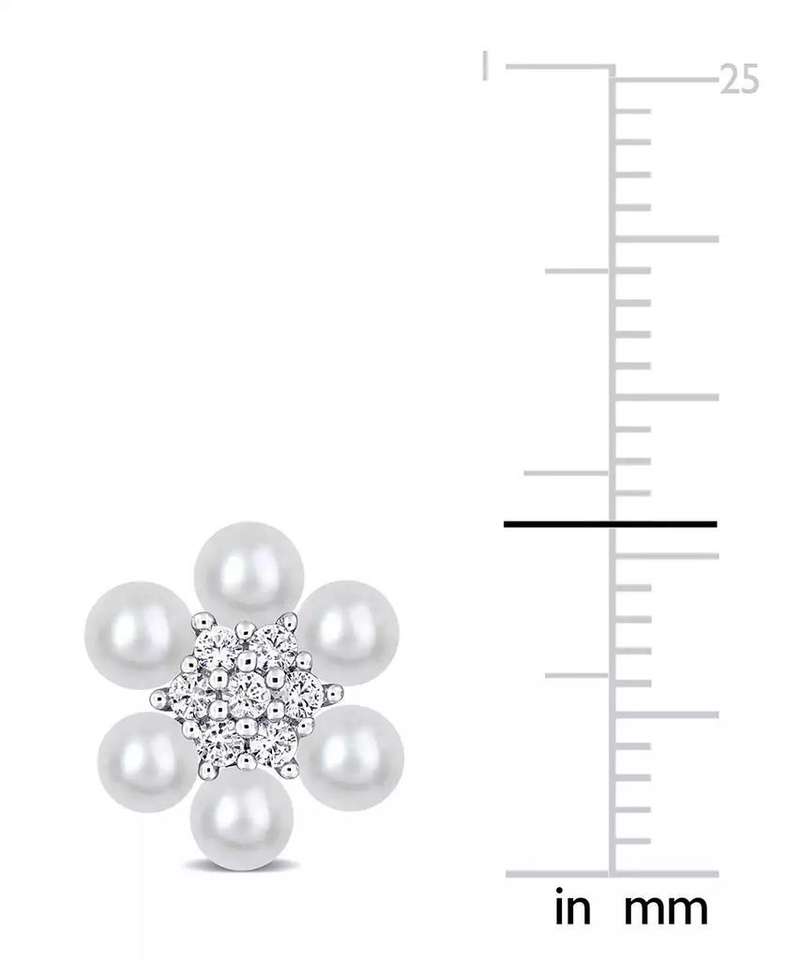 Cultured Freshwater Pearl (3-3-1/2mm) & Lab-Created White Sapphire (1/3 ct. t.w.) Flower Cluster Stud Earrings in Sterling Silve