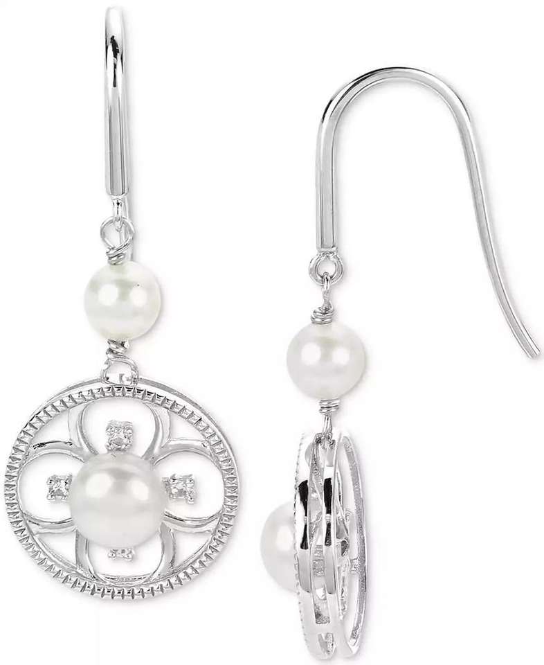 Cultured Freshwater Pearl (4-6mm) & Lab-Created White Sapphire (1/10 ct. t.w.) Flower Drop Earrings in Sterling Silver | Macy's