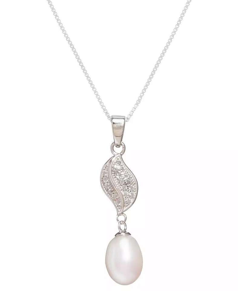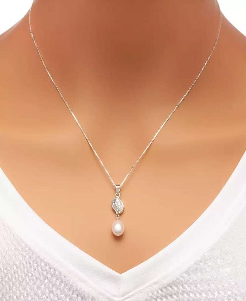 Collana con ciondolo di perle d'acqua dolce coltivate (7x9mm) e zirconi cubici e orecchini pendenti abbinati in argento Sterling | Macacy's