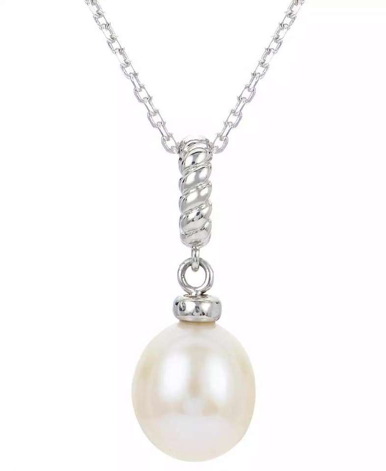 Collana con pendente a corda intrecciata con perla d'acqua dolce coltivata (8 mm) in argento sterling, 16 pollici + prolunga da 2 pollici | Macy's