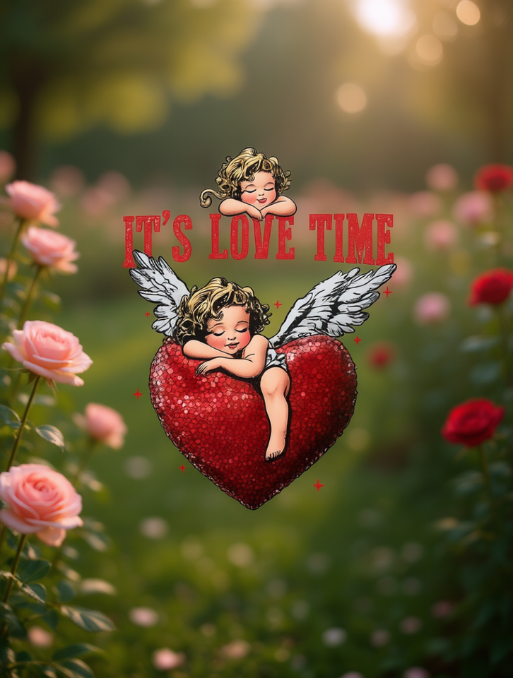 Cupid Pattern T-Shirt Shiny Red Heart Design Short Sleeve Round Neck Casual Top Unisex Summer Spring Wear 100% Cotton Jersey