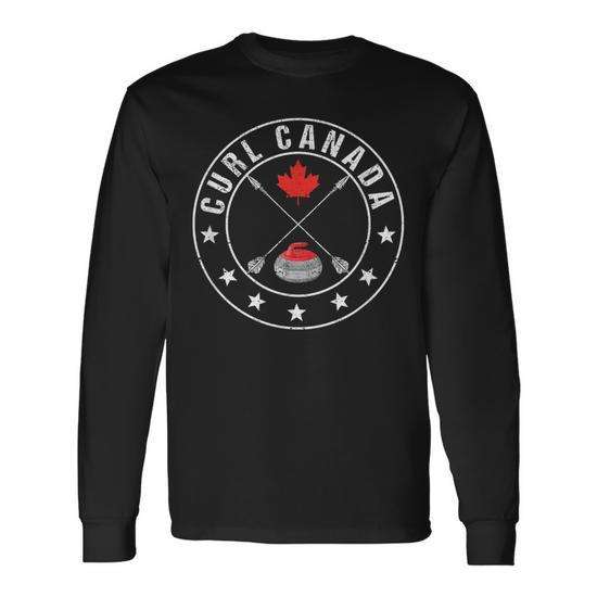 Maglietta a maniche lunghe Curl Canada unisex con scollo rotondo per adulti, abbigliamento per tifosi di sport invernali