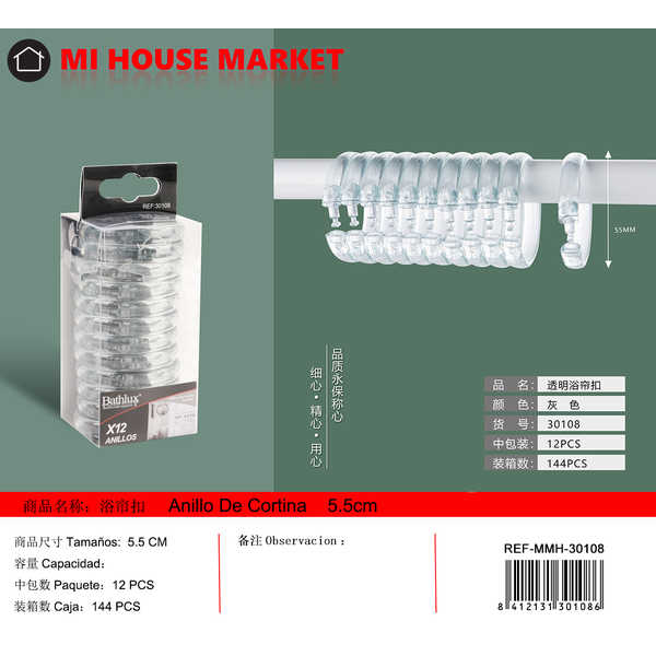 Curtain Rings 12pcs Shower Curtain Hook Accessories for Living Room Suitable with Curtain Track Curtain Poles