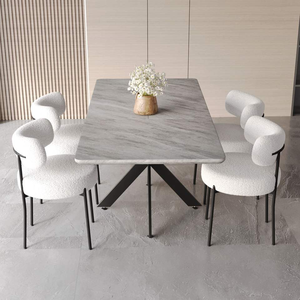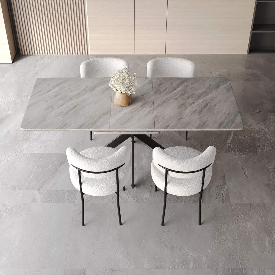 Set da Pranzo con Schienale Curvo Imbottito Senza Braccioli Estensibile per 4-8 Persone per Sala da Pranzo