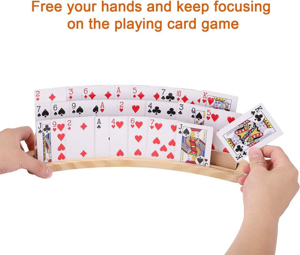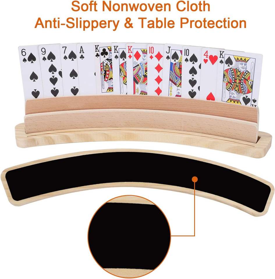 Supporto per carte da gioco in legno curvo vassoio Rack Organizer Set di 2 solido porta carte per i bambini anziani