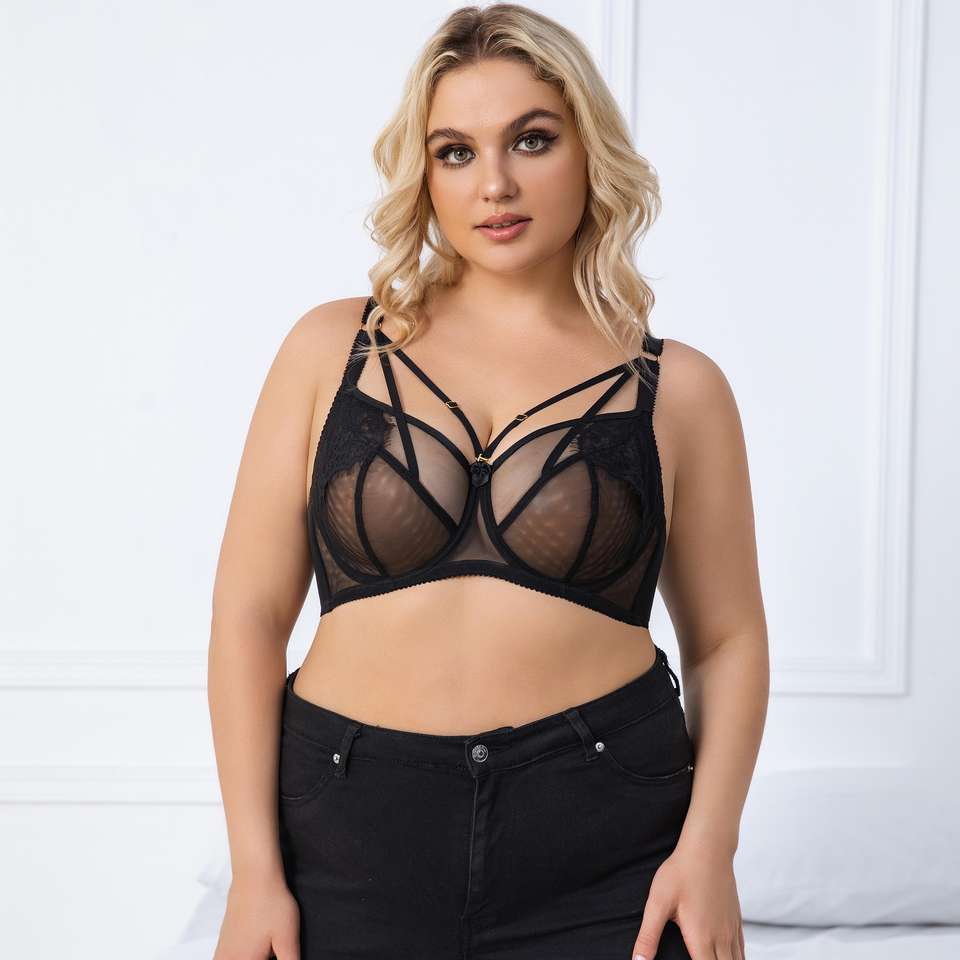 Reggiseno Sexy in maglia trasparente con coppa di D-G Curvy per donne taglie forti per reggiseno quotidiano con ferretto a 4 uncini
