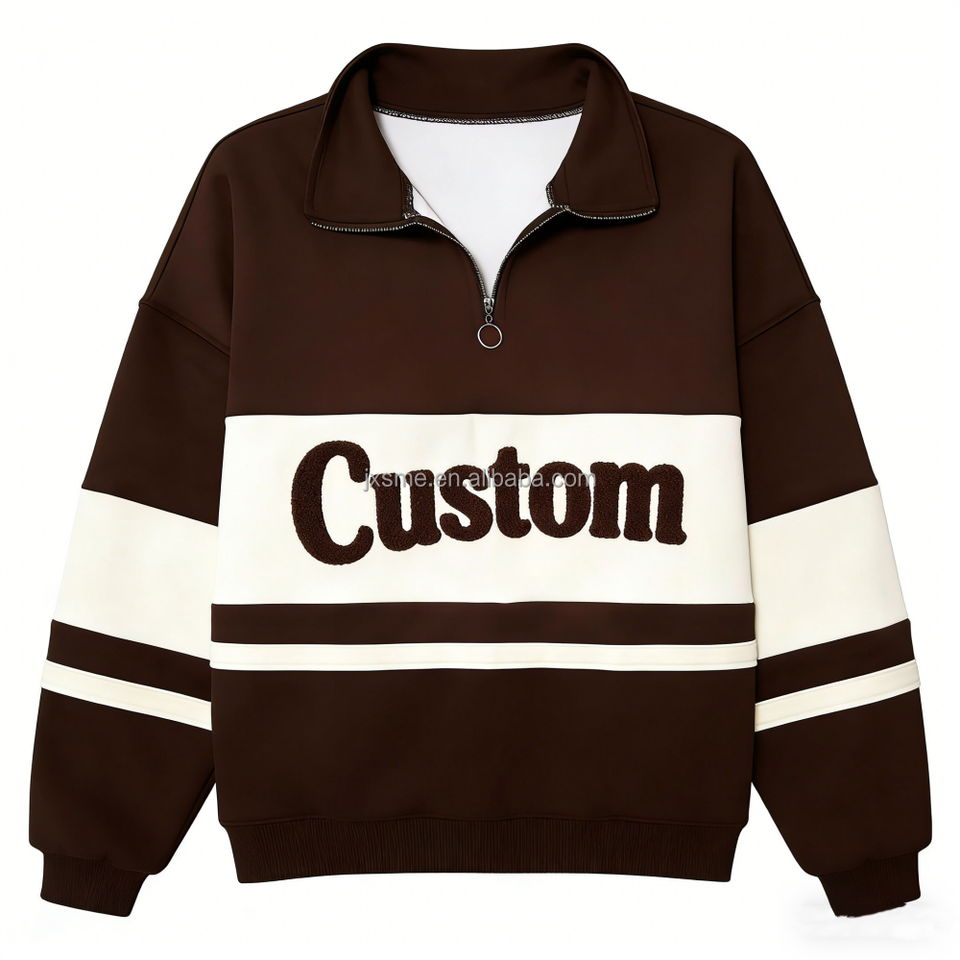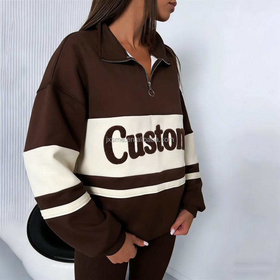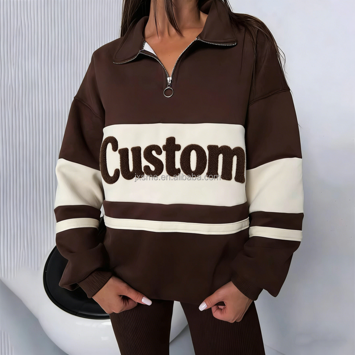 Felpa Personalizzata con Zip a 1/4 e Collo Alto, Felpa con Zip e Inserti a Contrasto Oversize con Ricamo a Spugna da Donna Senza Cappuccio