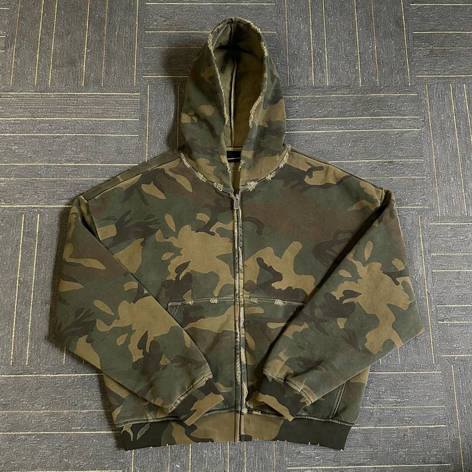 Custom 100% Cotton Vintage Distressed Camouflage Hoodie Zip up Jacket Hooded Sweatshirt for Men Streetwear