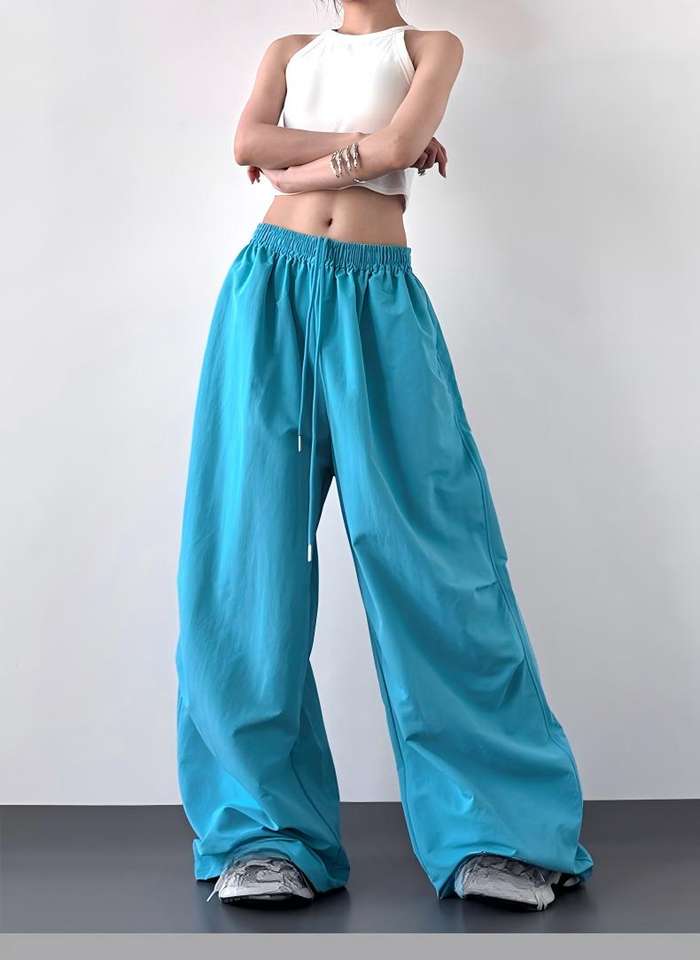 Pantaloni Cargo Larghi da Donna in 100% Poliestere, Stile Y2k Streetwear, con Coulisse, Gamba Larga, Arancione Rosso, Taglie Forti