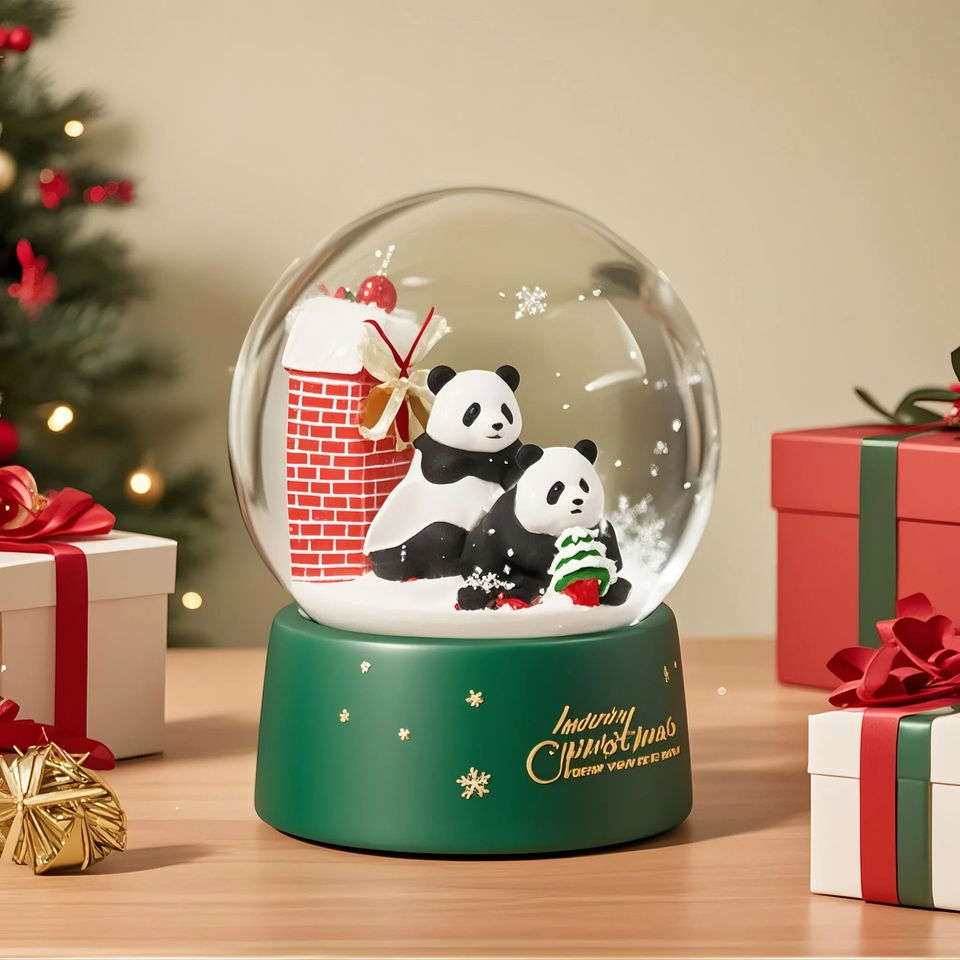 Custom 100mm Christmas Snow Globe - Festive Panda & Tree Resin Sculpture, High-Quality Holiday Gift with Swirling Snow
