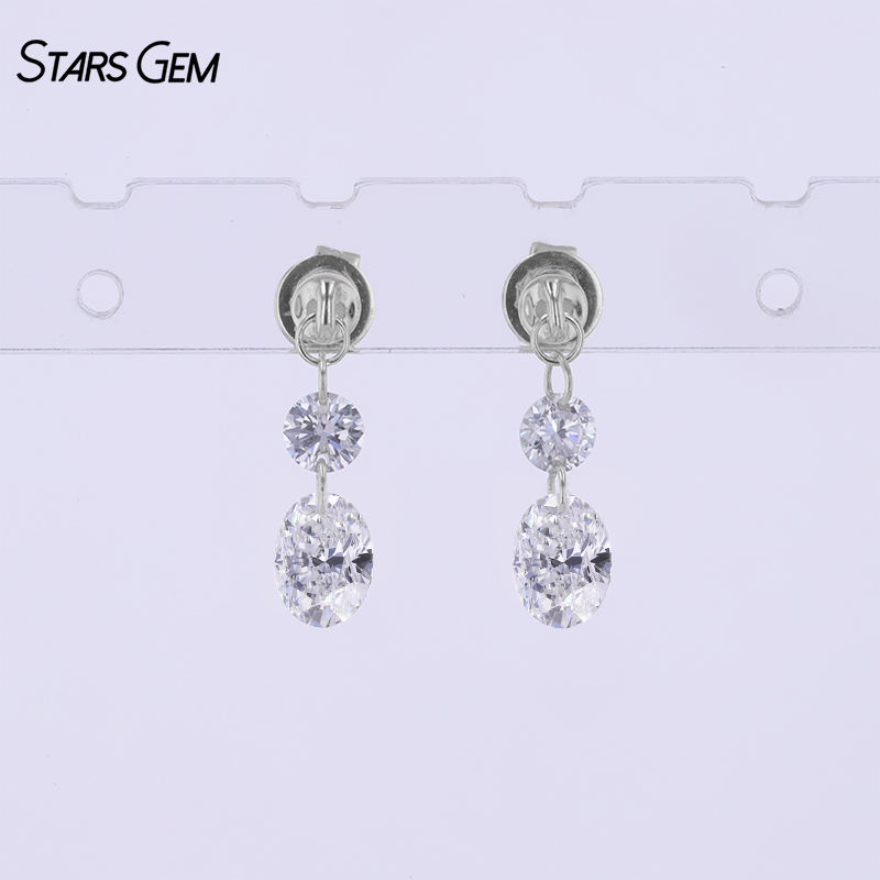 Orecchini personalizzati in oro massiccio bianco giallo 10K 1.09-1,42 ct Lab Diamond flotting strate punzonatura a cerchio taglio brillante forato a Laser