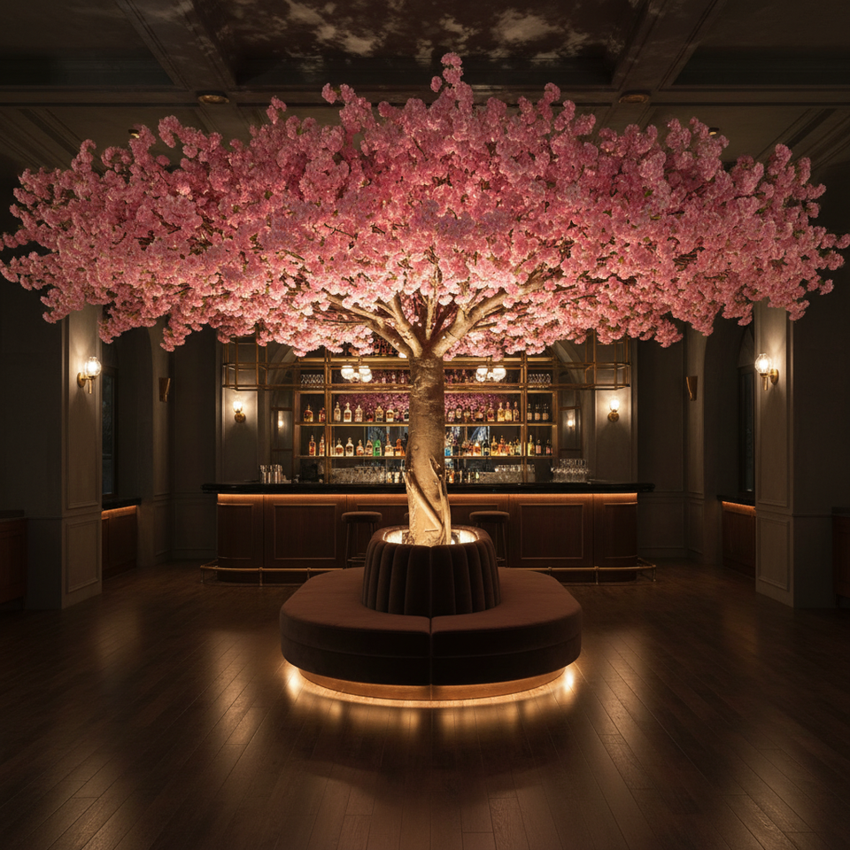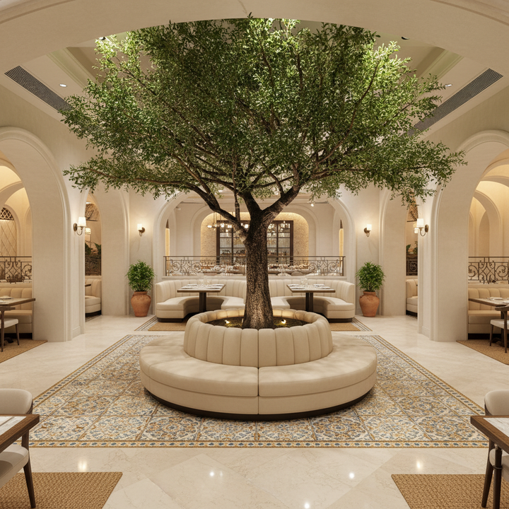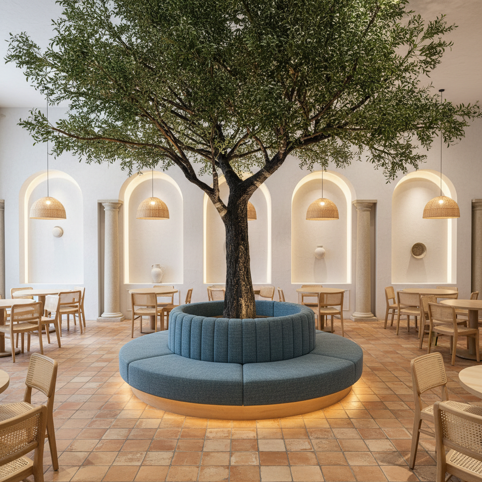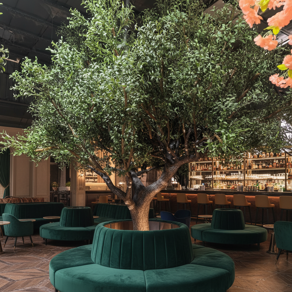Ulivo Artificiale Personalizzato Alto 4 Metri con Tronco in Vetroresina Effetto Legno e Rami in Materiale Plastico per Bar
