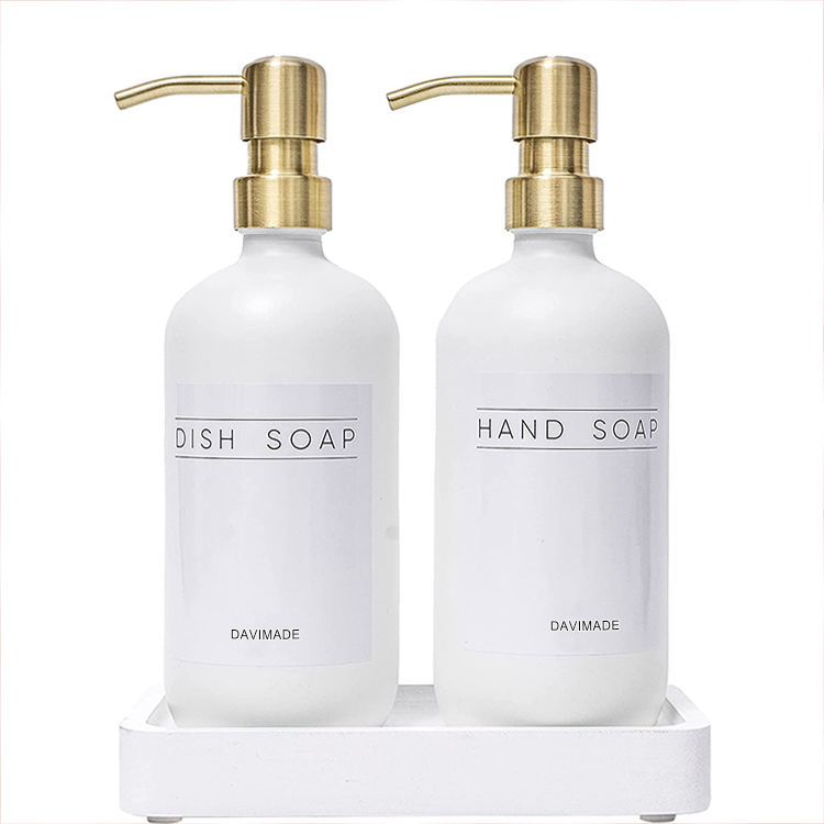 Custom 16oz 2 Pack in vetro Dispenser sapone per piatti a mano bottiglia accessorio per il bagno con pompe mentali