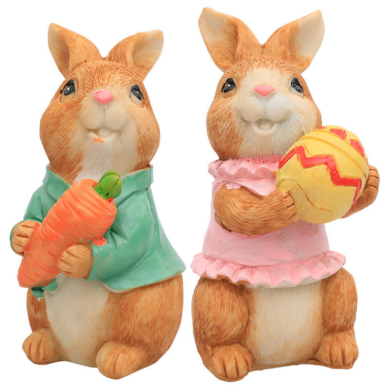 Personalizzato 2 pezzi decorazioni per la tavola di pasqua coniglietti in resina di buona pasqua ornamenti per uova, statua di coniglio primaverile in resina carina per la decorazione domestica