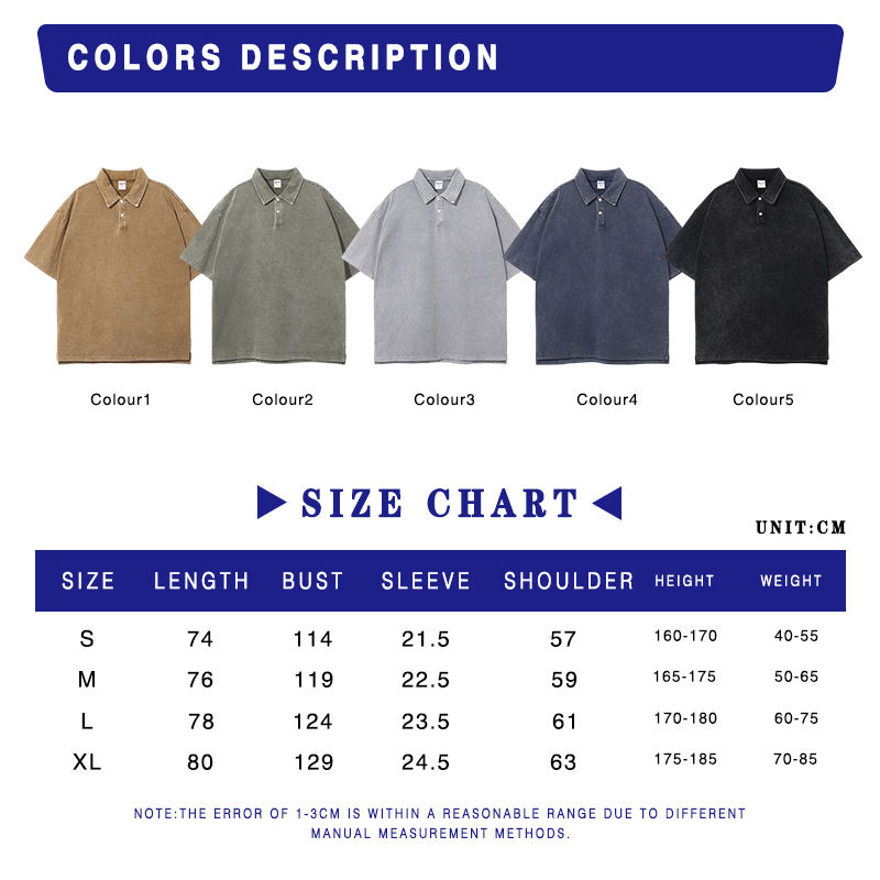 Custom 2023 Summer New Oversized Streetwear Heavyweight Acid Wash Vintage Men's Polo Shirt