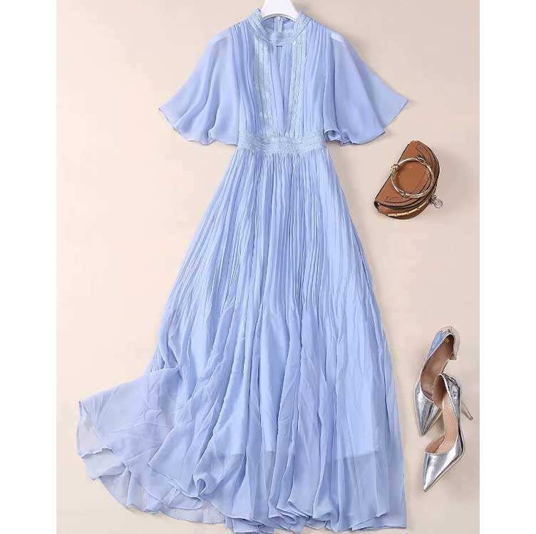 Abito lungo in Chiffon fatto a mano nuovo 2025 personalizzato abito blu chiaro in tinta unita abiti da sera piegati per musulmani