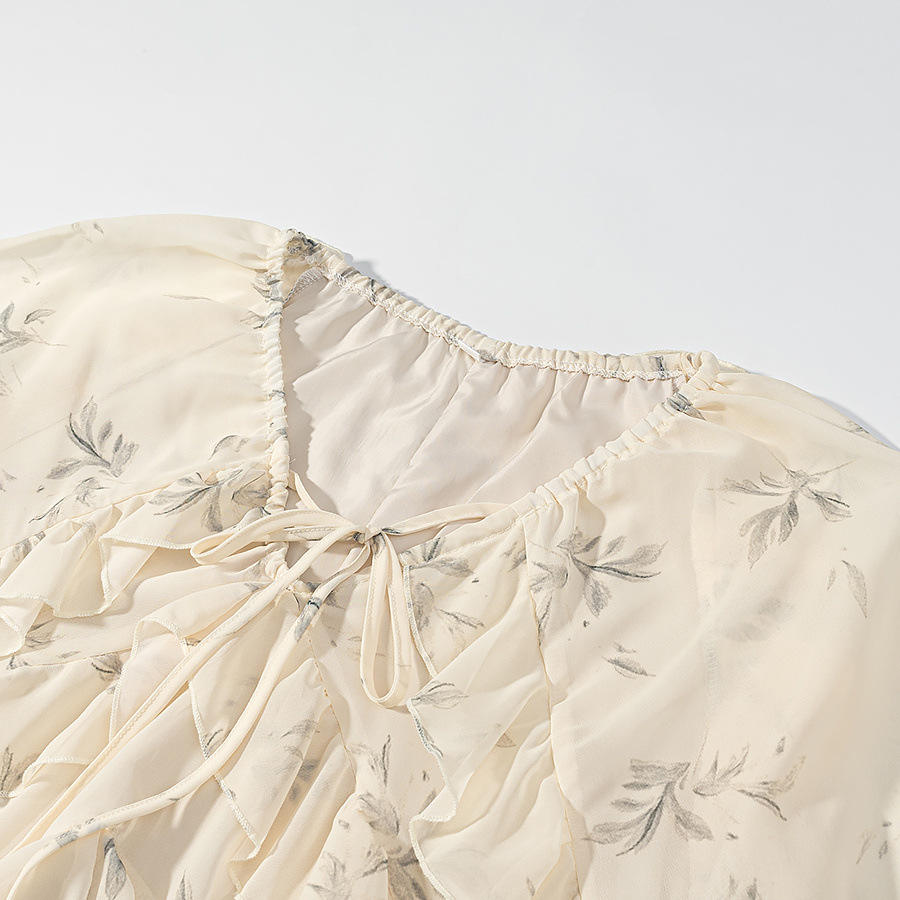 Abito Midi da Donna Personalizzato 2026 con Volant a Strati e Fiocco, Maniche Lunghe, Orlo a Balze Stile Vintage, OEM/ODM da Fabbrica di Abbigliamento Cinese